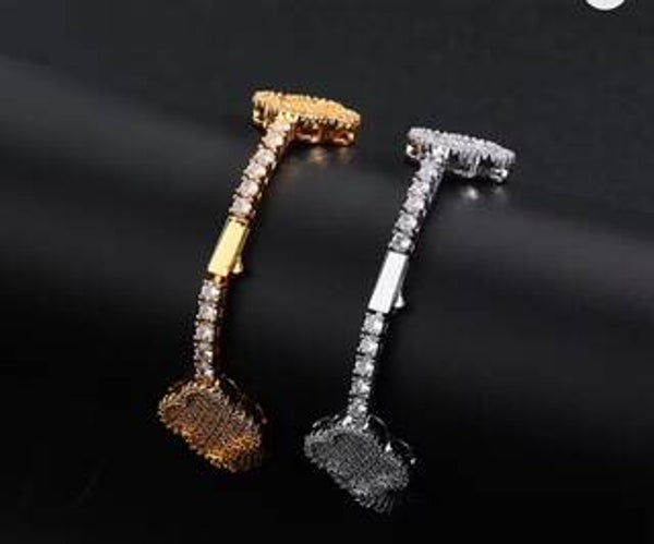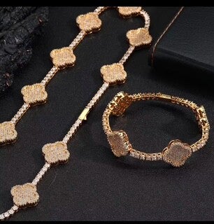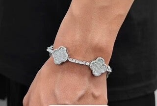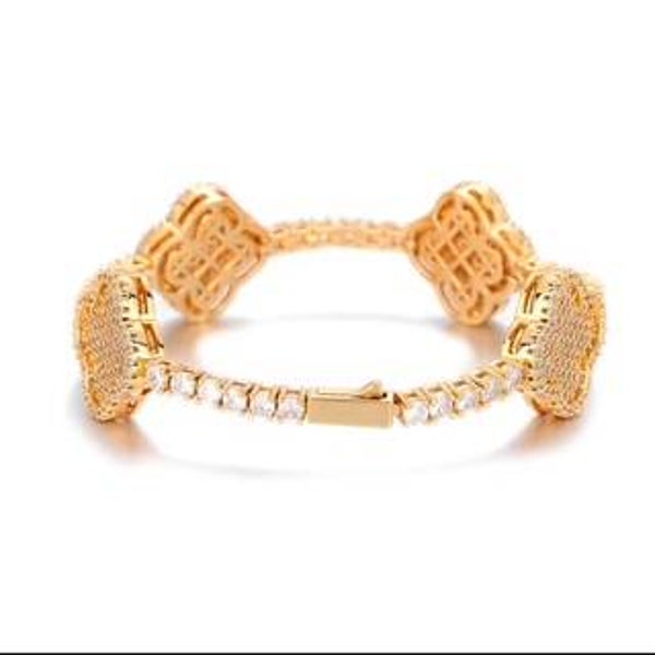 High Quality Iced Out Four Leaf Clover Tennis Chain Silver Gold Plated Brass Tennis Chain Bracelet Women's Jewelry