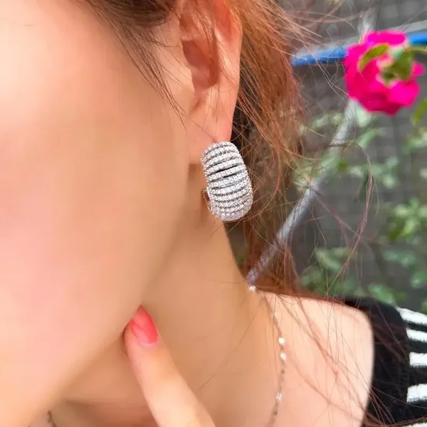 Cubic Zirconia Micro Paved Exotic C Shape Circle Hoop Earrings