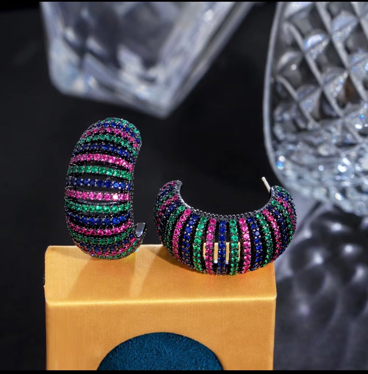 Black Gun Plated Cubic Zirconia Micro Paved Exotic C Shape Circle Hoop Earrings for Women Wedding Party Jewelry Gift